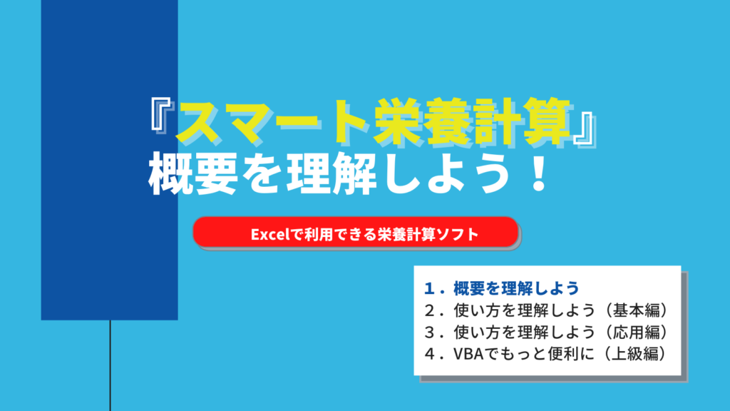 今回から4回に分けて,栄養計算アドインである『スマート栄養計算』について紹介していきます。 2015年,食品表示法が施行されました。これには,一般用の加工食品等における栄養成分表示の義務化も含まれており,2020年3月以降は,エネルギーやたんぱく... -